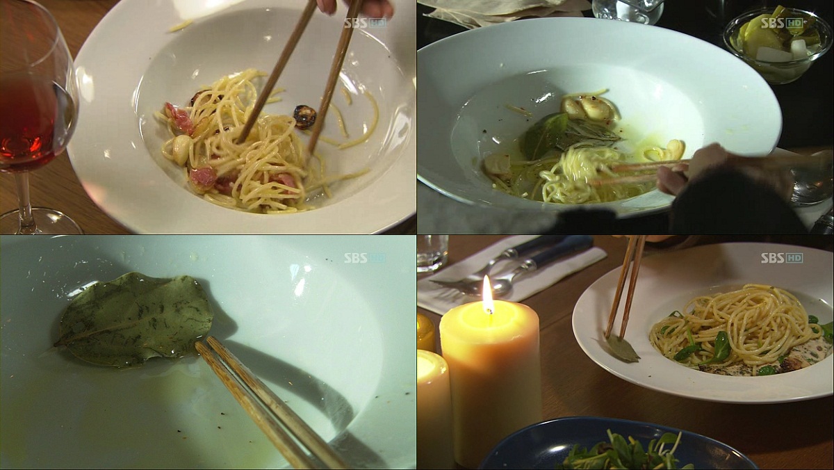 Well, that’ll be one the clues for Han Gang to discover Ji-Hyun in Yi-Kyung’s body. Also, the fact that Ji-Hyun doesn’t eat the leaves in the spaghetti (I don’t know the name, not its fan either ^^;) and he notices that Ji-Kyung (Ji-Hyun in Yi-Kyung’s body) doesn’t too.