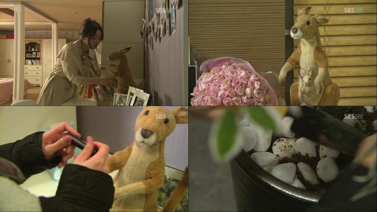 A gift from Min-Ho to Ji-Hyun, she then regards the plush toy as her treasure box to keep her belongings, including her seal (a stamp that is as powerful as one’s signature). Later, the seal (and Mama Kangaroo too) become the things that In-Jung and Ji-Hyun look for and sent them into a Kangaroo-and-Seal hunt. Luckily, Ji-Hyun got hold of them first. This brought her to the discovery of Han Gang’s (unbelievable) hobby while searching for place to hide her seal. This seal surely will resurface as she hid it in Han Gang’s room.