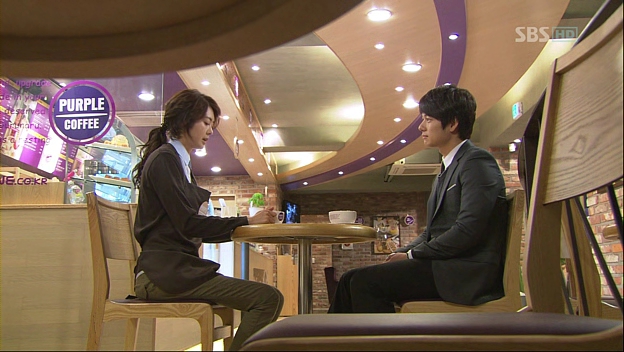 Leaving the company, DS seems to be worrying over something (or someone). Heh. His scheduler sunbae comes on a bike. It’s Hwan’s grandmother from Shining Inheritance! 😛