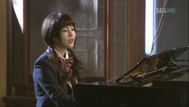 The next day, HG goes to visit JH at the hospital and runs into JH’s dad. JH’s dad coldly tells him not to visit JH anymore. Awww…poor HG! On the other side of the town, JK goes to work and finds out that it’s a day off. However, thinking that they might have another cleaning season, she enters the cafe and spends her time playing piano. HG, who just returned, hears her playing and immediately, the song that JK is humming reminds him of someone.