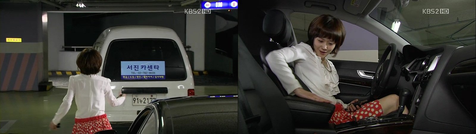 So-Young, on the other hand, has been given the car key of Seung-Il’s car by the guy, and he quickly leaves. So-Young is confused and does not know what to be done, but a guy in the car behind tells her to move the car aside. Having no other choice, she moves and parks the car with shaking hands, maybe it has a long time since she last drove a car. She looks around in the car and stares in awe. While she is enjoying her time and the seat’s pure leather, someone appears in front of her.