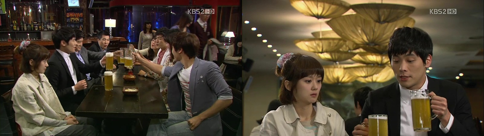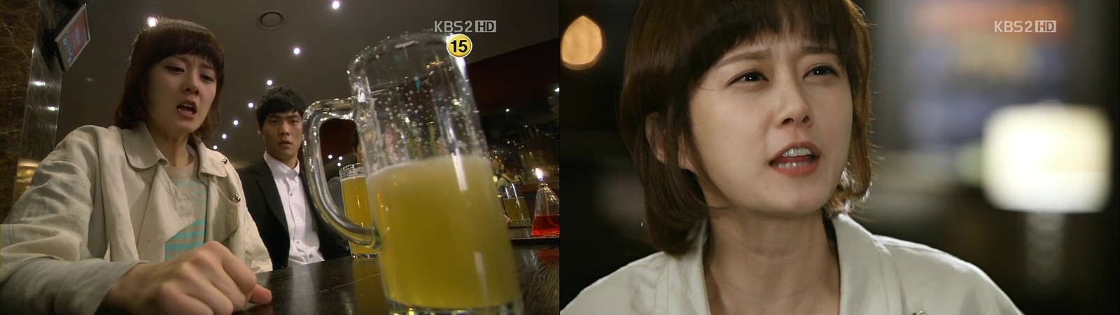 So-Young gets dragged to the bar alongside Jin-Wook and she joins them. Everyone starts to toast and drink but when she wants to grab her glass, Jin-Wook stops her, saying that it’s his and he wants to drink two glasses today. Besides, it’s his money and not hers. His friends feel weird about his attitude and offers her the glass, but he still does not allow her to drink. His friends ask what is wrong with her drinking the beer, and he says she is an under-age and only 18.