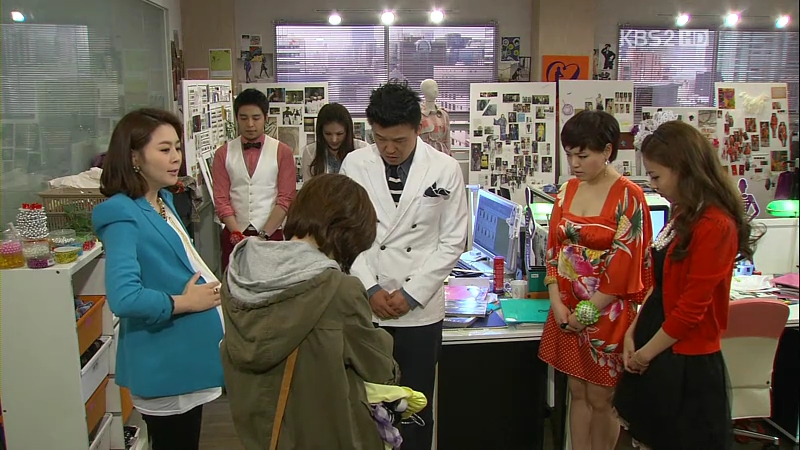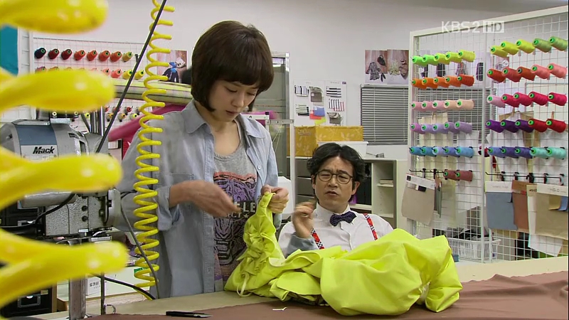 At the manufacturing department, So-Young is told to do the sewing for the sample as a compensation for using the sewing machine earlier, while the guy sits happily and orders her around. However, when Director Baek (Kim Mi-Kyung), the head of the department comes, he tries to claim her work as his, but she knows better and sends her off to give the sample to the design department. Manager Jang, who is sleeping, tells So-Young to just leave the sample on the table. Which I assume will bring some more problems afterwards.