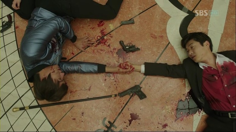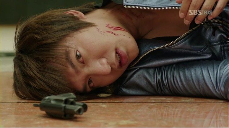 Luckily, Yoon-Sung is not covered with so much blood as Young-Joo. Thank God. Luckily he’s just being shot. Not stabbed, or anything worse.