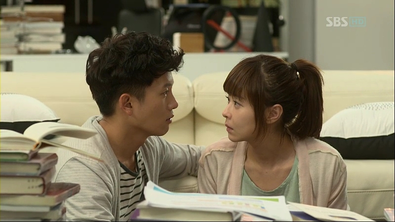 cutie Ji-Heon tends all the holes and cuts on the cardboard with plasters. Can he be any cuter? It’s quite an irony because he treats the cardboard like his princess and speaks sweetly with it but when he’s with the real Eun-Sul, he likes to argue with her. And he decides to try changing her mind while she’s giving him the time to think back about his feelings to her.