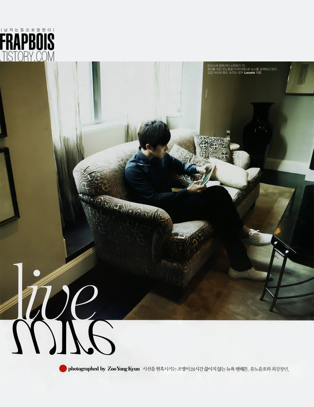 Potter Yunho and Fashionista Changmin are what makes me aching to post this. This photo shoot was probably taken during their trip to New York for Lacoste’s fashion collection showing earlier this month. Yunho looks as suave and adorable as usual but seeing Changmin in various outfits just make me burst out laughing, maybe because I remember this. Growing up may improve your sense of fashion and plus, if you’re being selected as a brand’s spokeperson, why not?