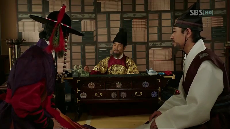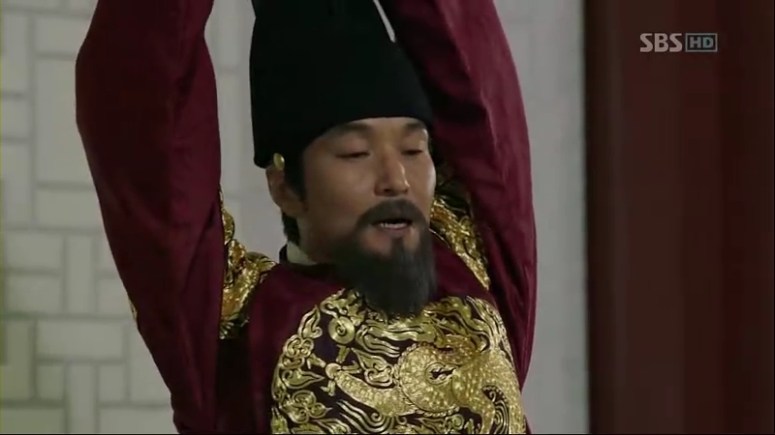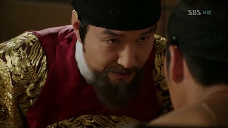 Moo-Hyul comes over to deliver the news to Sejong about a military official that has been murdered in the North border. The person that comes to the palace bringing the news has been recommended to be a palace guard. Moo-Hyul goes to see the person: it’s Kang Chae-Yoon, trying to avoid being punished after trying to bribe the officers. He is then brought to meet Moo-Hyul and starts praising him to get closer to him. Chae-Yoon tries to bribe him, but unfortunately, Moo-Hyul’s anger makes him being punished. His goofy character is only a façade to his real, cold character. He begins plotting his revenge on Sejong, or Yi-Do.