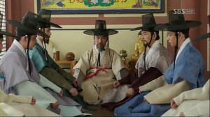 Sejong tells Jeong In-Ji to warn his scholars in secret, but Officer Jeong is already blabbering about the investigation in front of Lee Shin-Jeok and Jang Eun-Seong (Baek Seok-Bin). Minister Lee advises him to solve the case faster, but he’s not going to let the matter slip without his knowing about it and orders the report to be handed to him.