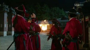 Scholar Jeong comes to meet Sejong, who is practicing some weird sounds with someone, probably a woman. When he says about a scholar that has disappeared, Sejong dashes out and tells him to find the scholar as soon as possible. The missing scholar is Yoon-Pil. In the meantime, Yoon-Pil is wandering around the murder scene in Jip-Hyun Jeon, probably searching for something and without him knowing, Chae-Yoon and Cho-Tak have also come into the hall. Yoon-Pil finds a small note under the table where the scholar has been murdered, but Chae-Yoon knows that he’s there. He’s then chased by the guards and decides to burn the note, but Chae-Yoon manages to retrieve it and he’s knocked down by Cho-Tak.