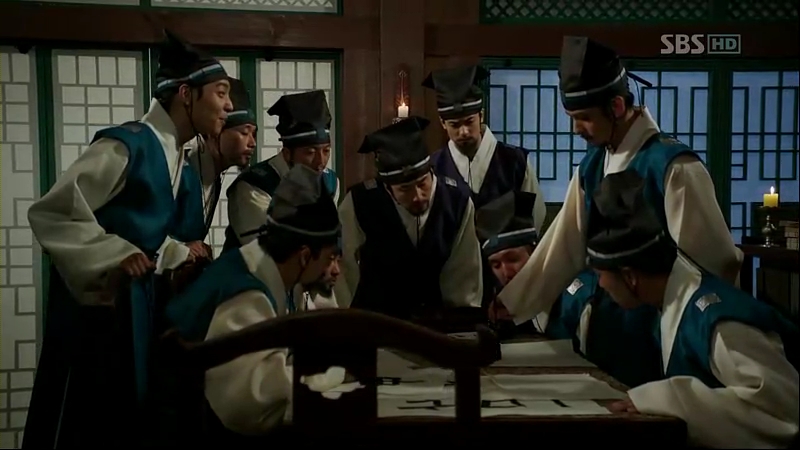 The scholars are busy discussing about the characters when Chae-Yoon and Cho-Tak arrives at Jip-Hyun Jeon. They are rather surprised to see the Assistant Chief Scholar Shim is the same person fighting off the Ming people on the streets earlier. Chae-Yoon requests for a body inspection on all the scholars but he is turned down by the Chief Scholar Choi Man-Ri, who then chases the two guards out angrily.