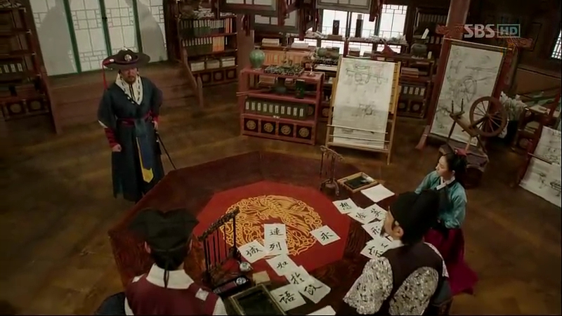 Next, Sam-Moon and Paeng-Nyeon are introduced to the alphabets and Sejong emphasizes on the simplicity of them. They are amazed with the alphabets’ shapes that are all derived from the organs where their sounds originated. Sejong is curious why they are so deep in thought and asks their opinion about the alphabets. Both of them think it’s not the time to decide yet, and Sam-Moon points out some things that are still incomplete. Sejong chides them for being so mean in their comments and admits this is why he’s giving out secret orders, and this time, it’s for Ga Ri-On.