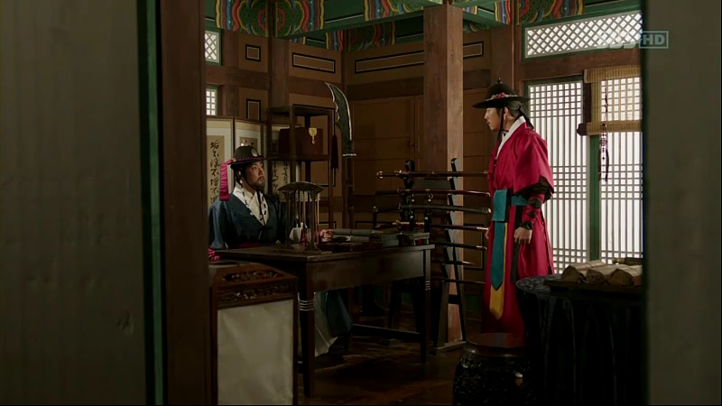 They walk towards the main quarters and Sejong begins to lecture Moo-Hyul about him being so far away when he met Chae-Yoon earlier. He accuses Moo-Hyul of not caring about his safety anymore despite his knowledge about Chae-Yoon’s intention. Sejong is worried about Chae-Yoon, whether he could get what he said. He asks Moo-Hyul’s opinion about his words before, but he actually doesn’t really get what Sejong was saying. Sejong teases him but at the same time, wondering about Chae-Yoon.