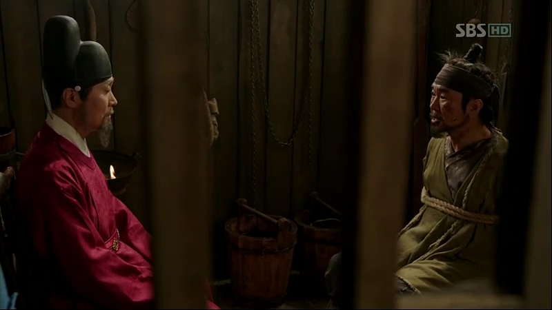 The interrogation is going on between Minister Jo and Ga Ri-On. Monister Jo knows about Ga Ri-On being forced to deliver meat to Scholar Nam secretly. Ri-On pleads, saying he’s innocent and he jut delivered meat to the residence on that night. Minister Jo asks him about his family and Ri-on tells him about his father who’s dead after being shot by arrows. Believing the butcher is innocent and there’s someone else behind him, Minister Jo tells him to confess about the person that gave him the order. Minister Lee is also there, watching them in secret, full of worry.