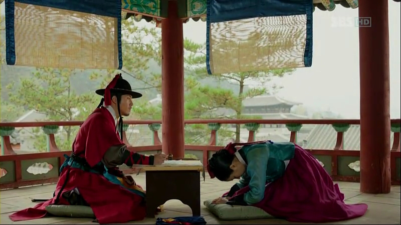 She explains about her inability to testify Ga Ri-On, afraid that the secret King’s order would be revealed and asks for his help to prove his innocence himself. That makes Chae-Yoon angry as Sejong seems to be someone who doesn’t know the value of a life and prefer the worthless butcher to be sacrificed rather than disclosing the crappy secret to save him. So-Yi writes something and then, she bows in front of him.