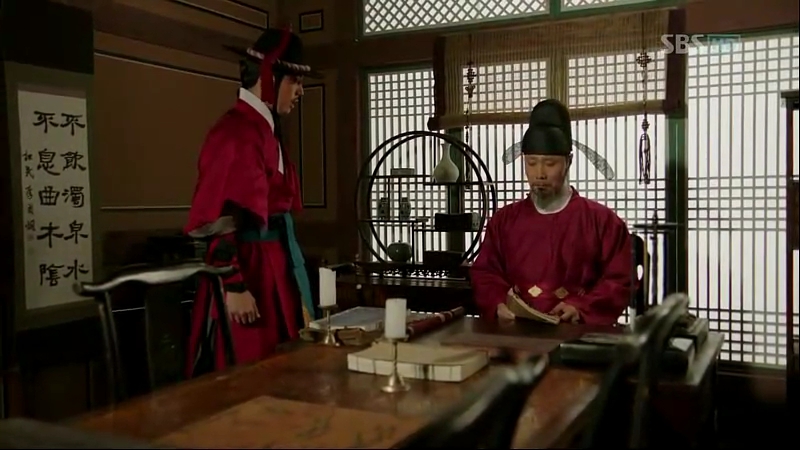 Scholar Shim’s assistant feels something weird about the guards, but his master doesn’t take it seriously. Suddenly, they hear Chae-Yoon’s voice outside, ordering the servants to help him find his tag. Scholar Nam heads out and he disapprovingly comments on Chae-Yoon’s recklessness. Then, Cho-Tak and Park Po run into the compound and between their breaths, they tell him about an eye-witness who is sketching the suspect’s face. Their small acting session is interrupted by Minister Jo’s sudden appearance and they leave.