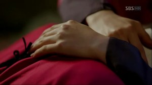 Pyeong orders the men to kill So-Yi first. Chae-Yoon doesn’t wait too long; he blocks the men with his own body to protect So-Yi. Before the man could do anything, he’s killed by a spear. It’s thrown by Moo Hyul, who’s arrived at the scene with the royal guards. Surprised at this turn of event, Pyeong and his men run away. Chae-Yoon doesn’t forget the pouch containing his father’s will and quickly picks it up. Moo Hyul doesn’t say anything, instead he bows and the guards make a way for Sejong. He walks towards So-Yi and Chae-Yoon.