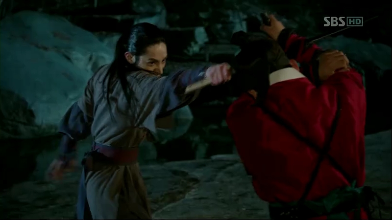Pyeong has the upper hand with So-Yi being captured by him. He wants Chae-Yoon to surrender the Mil-Bon letter to him. Chae-Yoon walks towards him cautiously, holding the important will in his hand but before Pyeong could get it, he holds it near to the fire. He wants Pyeong to release So-Yi first. Pyeong tries to distract him using the pouch and he succeeds. He kicks Chae-Yoon’s hand, sending the will flying u in the air before he catches it. Seizing this opportunity, Pyeong throws out a powder, making Chae-Yoon’s sight hindered. Pyeong strikes to kill him, but only successful to wound him at some parts. So-Yi tries hard to scream Pyeong’s position to Chae-Yoon, and she finally utters a word. Thanks to her, Chae-Yoon manages to dodge his opponent’s attacks and wound him. However, some men arrive, putting his effort to defeat Pyeong to its end.