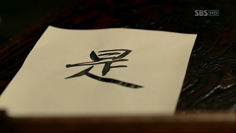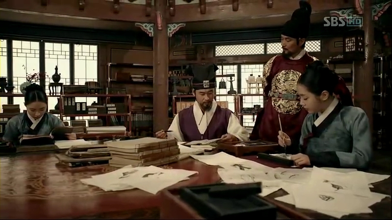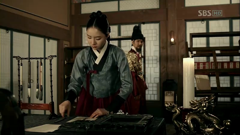 They sat around a table, where Sejong presented her with a note pad for So-Yi to write all her thoughts and what she’s trying to say to others. He told her about his idea of creating a simple writing system that everyone could learn. It’s also a respond to her suggestion to raise the children, and after listening to his train of thoughts, she wrote a character that translate, “Yes”.