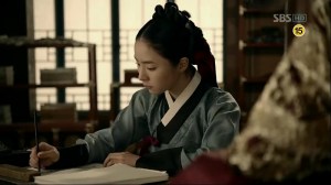 He began to demand why she didn’t even change over the years after what he told and did for her. He stated what he did on the day Lord Shim On died but soon, he grew impatient after she didn’t say anything. He grabbed So-Yi’s shoulders, accused her of doing nothing to improve her life, like a small kid. So-Yi went towards the table after she was released. She scribbled something on the paper and passed it to Sejong. On the paper, she told him to educate them, the people if he thought that they were still children like her.