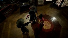 Without any delay, he strikes, only to be blocked by Moo Hyul’s sword. Despite Sejong’s order to retreat, Moo Hyul refuses to do so. Sejong moves closer to his sword, but Chae-Yoon moves backwards. Sejong knows he isn’t going to kill him, but he’s only there to kill himself. Chae-Yoon pulls his swords towards his throat to end his life, but Moo Hyul is faster to block him and pushes him away onto the floor. Sejong chides him with his usual curse, saying that it’s because of a great teacher of him who also loves cursing.