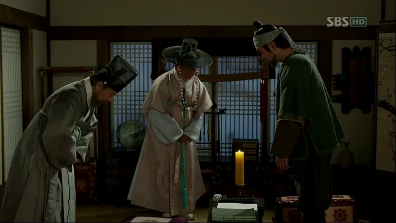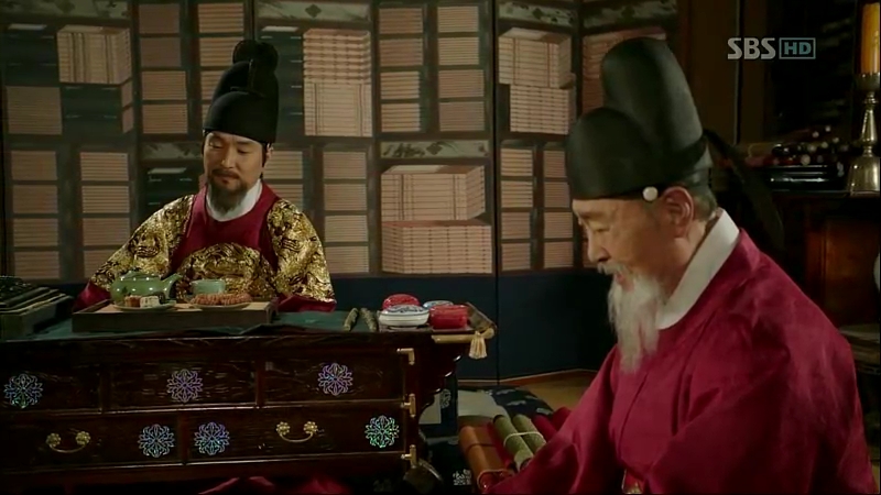 The officials are discussing about Sejong’s movements around the palace. Everyone gives a disapproving look at Minister Jeong, who doesn’t say anything about his frequent meetings with Sejong.