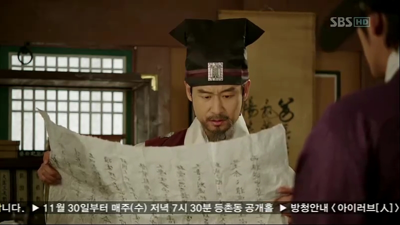 He brings it back, where Han and Scholar Shim recognize some familiar Chinese characters in the mold. Ki-Joon puts two and two together, and he finally solves what Sejong is working on: alphabets. He laughs at Sejong’s foolish attempt to produce something that will be opposed by people practicing Confucius teachings. He decides to begin his plan, first putting Jip-Hyun Jeon in the officials’ bad book.