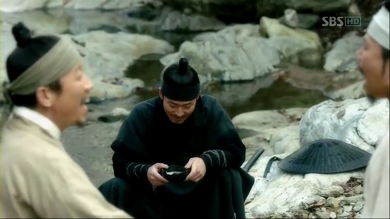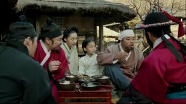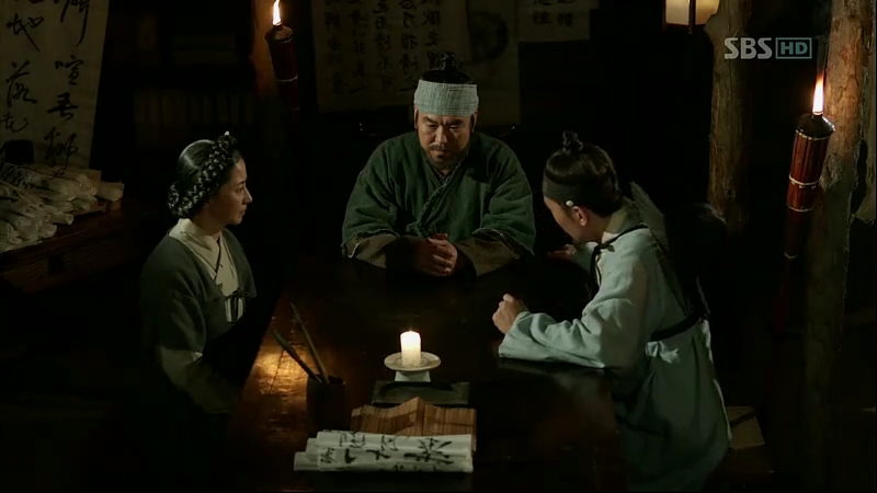 They head over to the tavern for a meal, where they are joined by the owner lady, the little girl, and the sound-maker guy. Their conversation is mainly about the current issue of the gossip about the king making a new writing system. Both Cho-Tak and Park Po both oppose the idea. Chae-Yoon asks why they thought so, and Cho-Tak thinks it’s not an easy thing for people like them to learn something new. Chae-Yoon listens to their conversation attentively and others also don’t think they would learn those writings and alphabets, except for the little girl. She wants to learn in order to write her friend’s name, which can’t be written using Chinese characters.