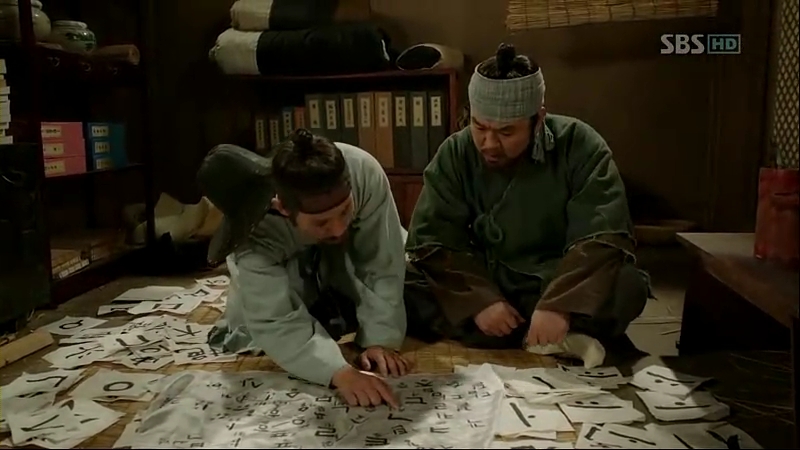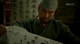 Scholar Shim can’t keep his thought to himself and decides to meet Ki-Joon. His thoughts about the writing system bugs him, and giving Sejong the opportunity to publish the letters might lead to something they don’t predict to happen. Suddenly, Han barges in, eager to show Jeong Ki-Joon something he found. Han finally finds out how the alphabets work. They aren’t the same as Chinese characters, but basically phonetics letters. According to him, the consonants and vowels could write any kind of sounds. He also finds out the real meaning behind the characters ‘Goon Gu Mang Gi’- something that might be pronounced as Mil-Bon.
