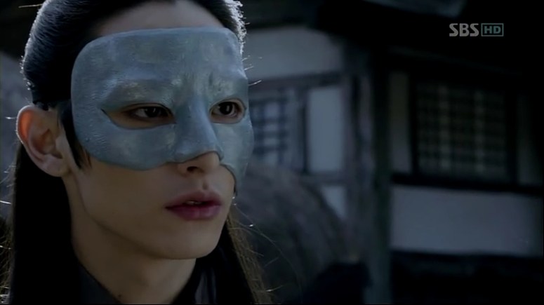 Suddenly, he starts to hang out freely during the day, and moreover, he can be found at the bookstore. The hanbok and the normal style of Banchon people doesn’t look too normal on him,and when he first appear with this style, I thought to myself, “He looks like an alien in a normal world!” I prefer him with his mask and his black hanbok. Light colors just make him brighter and more out of place.