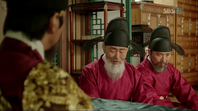 They still meet Sejong, after all. Before Sejong could give his decision upon the matter, Minister Lee cuts him, saying that he can’t persuade the officials to agree with the publication of the letters. Sejong looks at him, trying his best to suppress his anger towards his minister with the sudden change in decision. Minister Lee asks for his royal order to gather the officials for the royal examination.