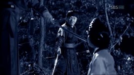 The story about Lee Bang-Ji is told by Moo Hyul: someone distracted him to leave Jeong Do-Jeon’s side by kidnapping a woman he loved, who also happened to be Jeong Do-Jeon’s woman. He hesitated between saving the woman or his master, but the woman stabbed herself to make him go to Sambong’s side. He was late, and his hesitation killed the persons he wished to protect. Burdened by his guilt, Lee Bang-Ji disappeared. Moo Hyul himself was one of the guards on duty on that night, but to Chae-Yoon’s surprise, Minister Jo whom he thought to know fewer details about the night was actually the man who distracted Lee Bang-Ji.