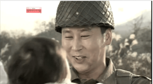 Sumi then begins her journey to search for soldier Shin by singing for troops who were in the army. She finally spots him when he does his trademark fixing the wedgie move lolol! She hugs him and they have sex in his car like a Titanic parody (didn’t think they would insinuate that). She looks at the name tag on his army suits and he tells her that he’s not her teacher, but she doesn’t care because she loves him. The war sirens sound and bombs are exploding everywhere, Soldier Shin blocks her in the car to protect her and he dies again.