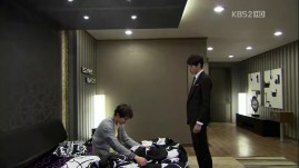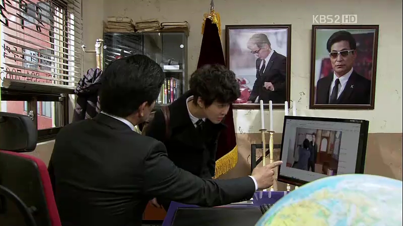 Off they go to her office, where Manager Kim starts reading the brochure about her bodyguard company: Kevin’s Cabin. pffft. Kevin Jang (the boss’ name) is nervous when Manager Kim starts digging out their bad history about one of the bodyguard’s mistakes. With that, he starts to discuss about the real reason he’s coming to his office.