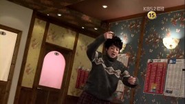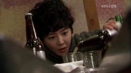 Back to the fateful night at the noraebang, where Eun-Jae with her father, Yoo Young-Gil (Lee Won-Jong) and her brother, Yoo Chang-Ho (Jang Tae-Hoon) were going to cut their own throats singing their hearts out and jumping all around the little room. The wild Eun-Jae sat like a real lady when the waiter came in to serve the beer, but she got completely ignored by the boy. Once he went out, she put the hidden soju she got onto the table and started to mix them with the beer.
