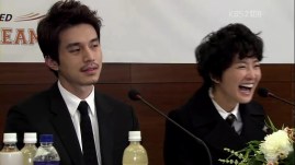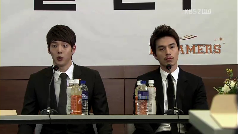 Here comes Kevin and Eun-Jae, walking under the limelight. The reporters quickly recognize Eun-Jae as the judo girl from the video and the story that comes out about the video is just a bodyguard teaching Mu-Yeol self defense. Mu-Yeol answers every single question regarding the reasons he hired the bodyguard, such as why a girl is chosen (he was once labeled gay when he went shopping with a guy, probably thanks to to Reporter Go’s spying and gossiping techniques) and why the bodyguard dressed so casually in the video (she has awful taste in fashion). The next question is for Eun-Jae, about the judo movement might be quite hard for Mu-Yeol, but she coolly replies, “Well, it might be quite hard, but after all he’s an athlete, right?”