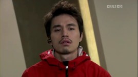 The next scene: she’s near the Han River (or known as River of Woe in kdramaland) where she’s waiting for someone. Mu-Yeol arrives, as usual with his red car. He doesn’t say a word about his schedule today, and he starts warming up. Eun-Jae (and so am I) thinks he’s going to start another fight with him, but he isn’t. Instead he makes her jog around behind him with the reason of protecting  him. She follows him, although she’s clearly reluctant to do so. Mu-Yeol makes her blurts out the truth about the egging incident and gets mad at her while Eun-Jae is enjoying the sight of him being pissed.