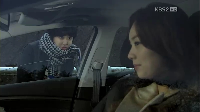 Another day: both of them are heading to somewhere near East Hongcheon with Mu-Yeol only telling Eun-Jae he needs to meet someone. They arrive at a big summer house in the mountain. He calls someone before letting her go back to her home. He barks when Eun-Jae wants to stay and forces her to go away (while hiding his evil grin and laugh). Girl is going to obey his order, but she kicks the car’s tire to keep her heart at ease before running away. Then we have out poor Eun-Jae, waling down the mountain alone in cold. Luck is on her side when a car passes by. She asks for a ride, but the car’s driver is the woman with Mu-Yeol at the noraebang. Eun-Jae remembers the woman, although she was drunk on that night. She declines and leaves Eun-Jae, again alone on the road. She walks off in the cold while cursing Mu-Yeol endlessly.