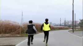 Their jogging session turn into a long track marathon (34 km!) until they don’t even know where they are. Both of them are nearly dying of fatigue (they look like an old couple with their horrible cracking voice) but they refuse to stop. Eun-Jae is the one who vomited first, so Mu-Yeol declares himself as the winner to the sudden competition. Eun-Jaecries in despair, while Mu-Yeol’s happiness disappears into the thin air when he realizes that they are at an unknown place.