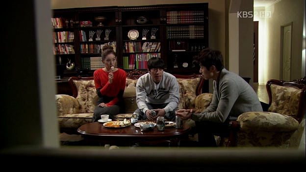 At Mu-Yeol’s house,Eun-Jae arrives at the doorstep, but the housekeeper ahjumma doesn’t think it’s appropriate for her to see him. He walks out and invites her in. She gives him the food she brought for him: one of the packed food for the Seagulls. LOL She’s the culprit who took one of the meal portions! Mu-Yeol tells his housekeeper to leave and although she’s ruluctant to do so,she still leaves. Eun-Jae is surprised to find out that the ahjumma has been with him for the past ten years. They argue some more, mainly about Mu-Yeol touching Eun-Jae’s butt. He slaps her butt a couple of times, telling her that there’s no such thing as sexual harassment between them. hehehe!
