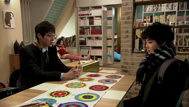 The next morning, Eun-Jae heads to Dong-Soo’s house, bearing a fruit basket with her. She apologizes profusely towards Su-Young and pleads her to receive the fruit (I want to show my sincerity! hehe). Su-Young explains that Mu-Yeol dated her junior and four of them were so close during their college years. Eun-Jae asks when they broke up but soon covers up her peaking curiosity, saying that it’s just her responsibility as his bodyguard. Truthfully, she still finds it’s hard to believe Mu-Yeol was that kind of loyal man, different from his bad-tempered, playboy nature nowadays.