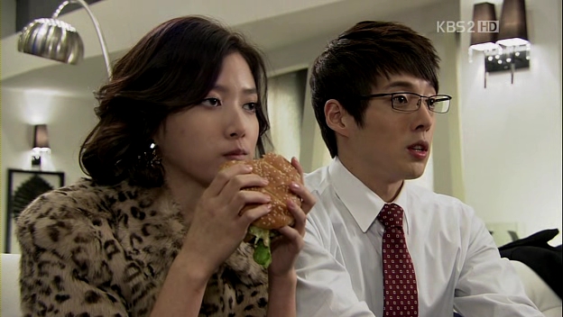 And just like it isn’t awkward already, Eun-Jae walks in and hears some weird sounds coming from the TV. She’s so surprised to see Manager Kim and Dong-Ah, caught watching porn together (hahaha!). She closes her eyes and withdraws herself from the room slowly..before Manager Kim tells her to stay as he wants to discuss something. She rolls her eyes at the video, quite surprised when he wants to talk with her during that crucial time. LOL
