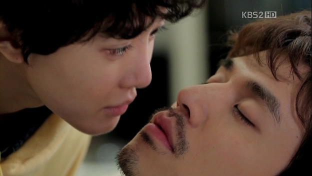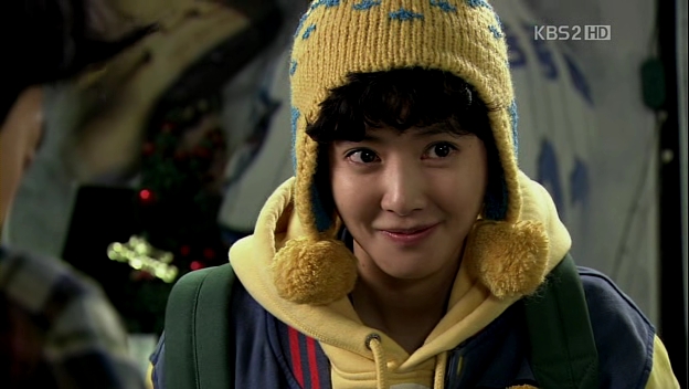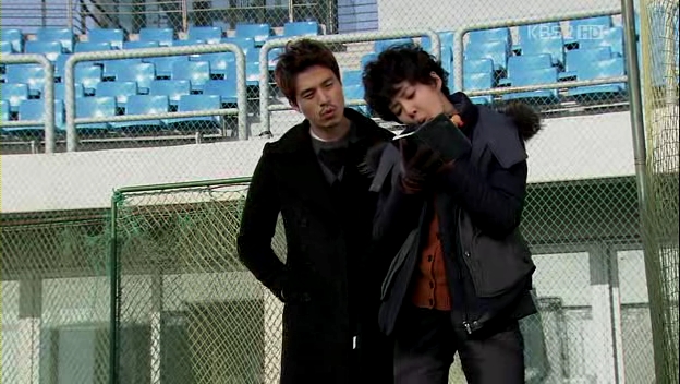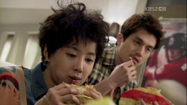 Kevin and Co. go to a place (I think it’s Han River), where Mu-Yeol and Yumi have a talk. He’s wondering why she is living like that and before she leaves, he calls her ‘messenger girl’ gives her the movie DVD that she acted in, before she went for plastic surgery. He thinks that she’s much more attractive in the movie, although he couldn’t figure out it was her at first. He doesn’t want to see her again and leaves with Eun-Jae in his car. He then thanks Eun-Jae for her help and she ‘eats’ his apology. squee