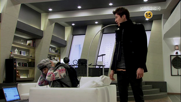 He’s so angry at Eun-Jae and makes her recite one of the rules of being his company’s bodyguard: Don’t watch any ‘special’ movies with their clients. He wants to give her more of his words, but Mu-Yeol suddenly appears in front of the door. Mu-Yeol requests that his bodyguard is to be replaced. In the elevator, Eun-Jae asks why he wants to change, Mu-Yeol feels it’s necessary as the problem is getting bigger (I have the feelings that he cares for her safety too! awww~). Another reason: because he can’t stand Kevin’s sunglasses, even indoors. hihi.