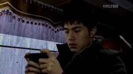 The situation is still the same as earlier, just that Eun-Jae has started to play game on her cellphone. Mu-Yeol’s text interrupts her but she ignores him. She asks Jong-Hee whether she’s hungry or not but no response. Eun-Jae mumbles to herself and Mu-Yeol texts her again. She marvels about the vast difference between the princess (Jong-Hee) and her servant (herself) and completely pissed off with Mu-Yeol, who’s suddenly becomes obsessive with texting.