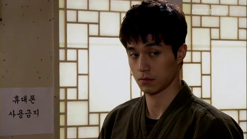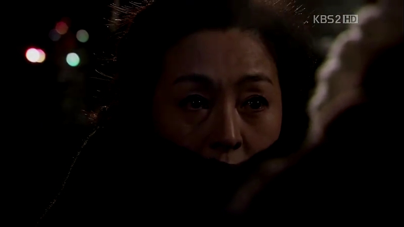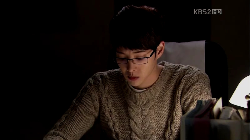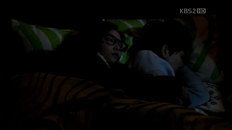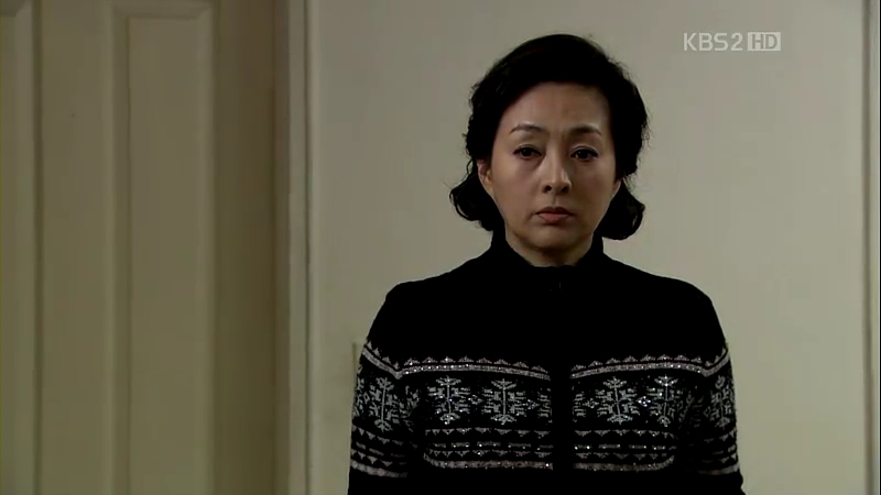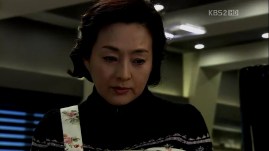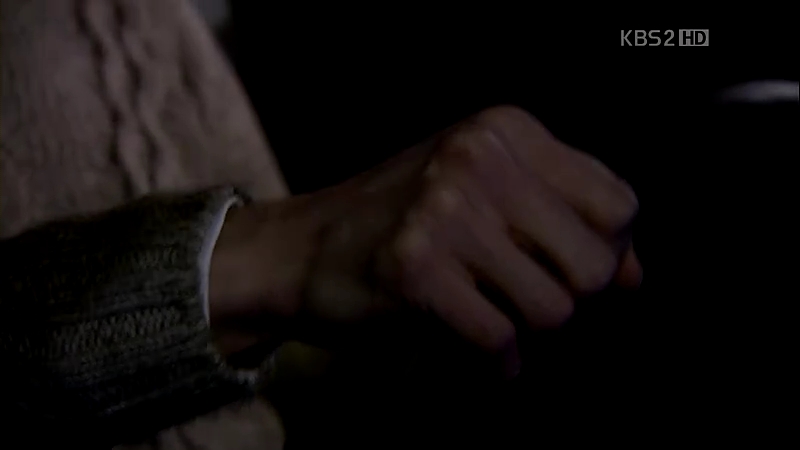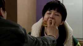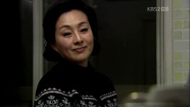 The ahjumma (I’m getting tired of having to call her with such a long name ^^;) prepares for Mu-Yeol’s dinner, but her mind is thinking about something else. She remembers that on the day of her visit to Yoon-Yi’s place, he actually took a peek of her face between the slightly ajar door. She’s way too engrossed in it and accidentally knocks down the hot soup on her leg when Mu-Yeol’s voice surprises her. He quickly tends her and she looks at him tenderly. Ewww..it’s quite gross actually!