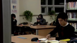 Being a book person she is, Dong-Ah is too engrossed in the book and she realizes that Yoon-Yi isn’t there anymore. It turns out that he’s actually been sitting in front of her (why you’re so creepy..?) and calls her, making her nervous. She gives him excuse that she comes to the library because she wants to read. He wonders why she didn’t accept his invitation to watch movie together, and Dong-Ah says she’s just a little shy and doesn’t dislike him. He proposes for them to date, and Dong-Ah smiles in victory. He finally takes her bait!