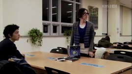 The door bells rings and it’s Eun-Jae, who’s arrived to do her job. She looks at Jong-Hee pitifully and asks some questions about her to Su-Young. Su-Young then leaves for her class and now, it’s Eun-Jae’s turn to keep her eye on Jong-Hee. She sits quite far away and sighs while looking at the expressionless girl.
