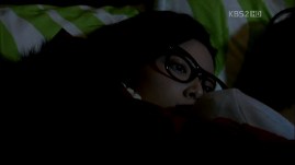 She goes inside, where Eun-Jae’s father is playing (or feeding? not sure) with the puppy. He tells her not to come back too late, like a real father. Double awww. She goes to Eun-Jae’s room, but she’s going to sleep. Dong-Ah joins her and gives her a back hug. They have a girls’ talk, but most of it comes from Dong-Ah. She tells Eun-Jae about the angry robot and feels a little upset about it. She then asks Eun-Jae: is she weird? Eun-Jae doesn’t say anything but faces her and asks back what’s wrong. Ah..I love their friendship!