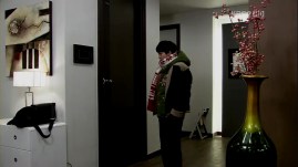 The camera pans into the room behind the bookshelves and Dong-Ah appears like a zombie after hearing her house phone ringing. The ringing stops and she returns to her bed while writhing in pain. On the other side, it’s Manager Kim who called and he keeps looking at his cellphone, probably wondering why she didn’t pick up the call.