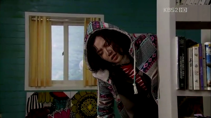 Mu-Yeol takes a look at the ahjumma’s photo back in younger days. He wonders if anyone told her to be an actress,but she actually wanted to be a poet. He thinks she should start to do so, but she says she won’t be able to do so, as she needs to be alone in order to become a poet. Oh really? She just smiles at him when he asks whether she’s not alone anymore right now. Creepy ahjumma. Her smile disappears completely when Mu-Yeol receives a call from Jong-Hee. He puts the photo and leaves in a hurry. The ahjumma’s face turns sour. Yeay.